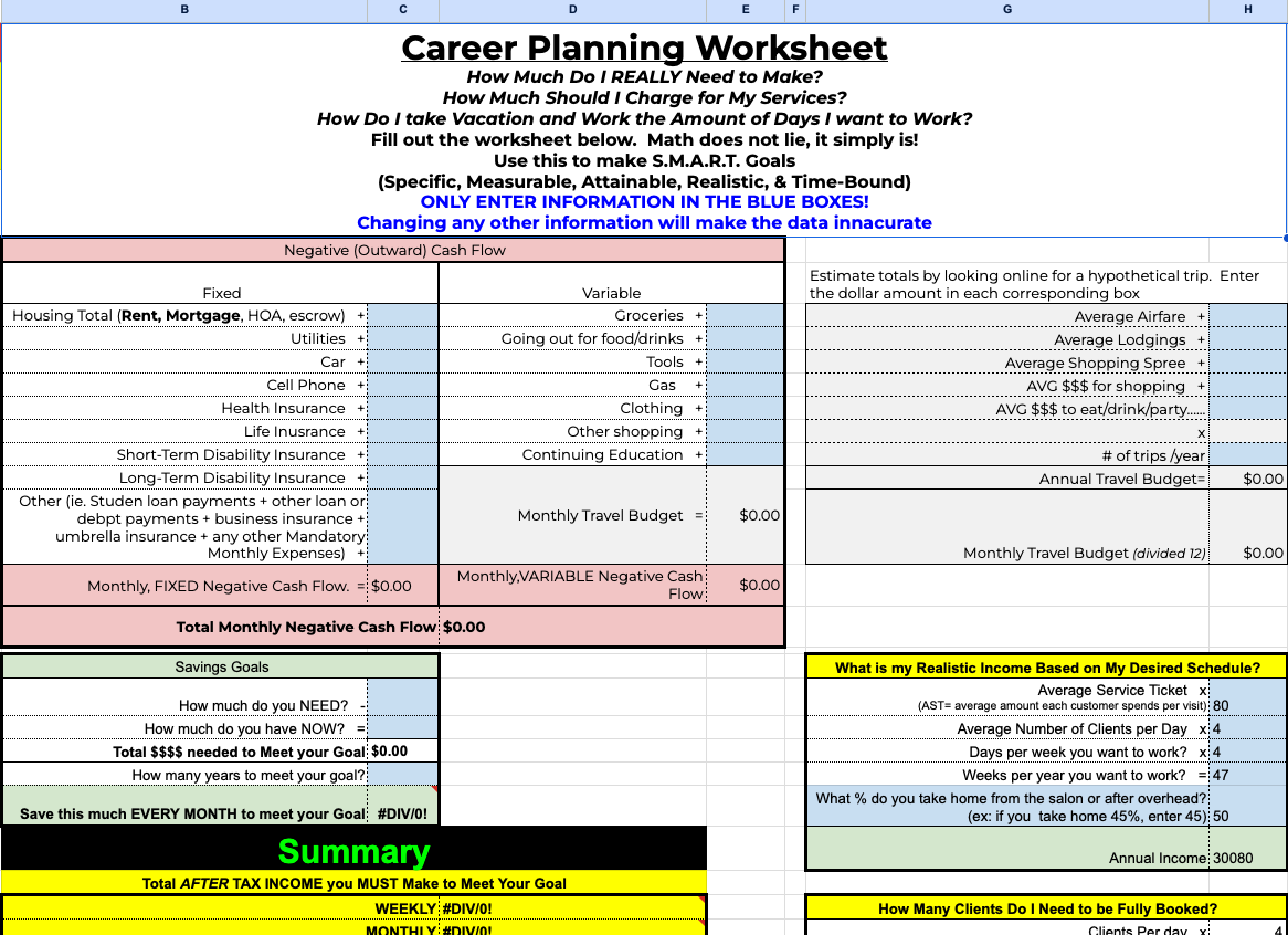 Interactive Career Planning/Budgeting Worksheet